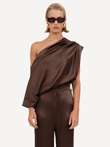 The Kenzie Top is a sleek one-shoulder design crafted from a soft, textured, and lightweight fabric. Its simple yet sophisticated style makes it easy to pair with any bottom or complete the look with the matching Pauline Pant for a chic, coordinated outfit. Perfect for both casual and elevated occasions.
