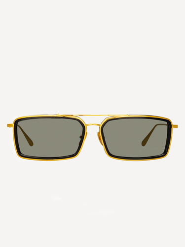 Crafted from yellow gold titanium frame with yellow gold pressed outline, these rectangular sunglasses from the A/W '23 collection offers an androgynous look seeded in intricate detail and awe.