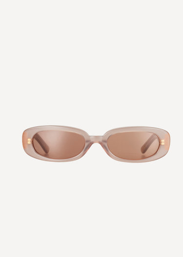 A 90s style all acetate frame featuring a slender silhouette and oval lenses.