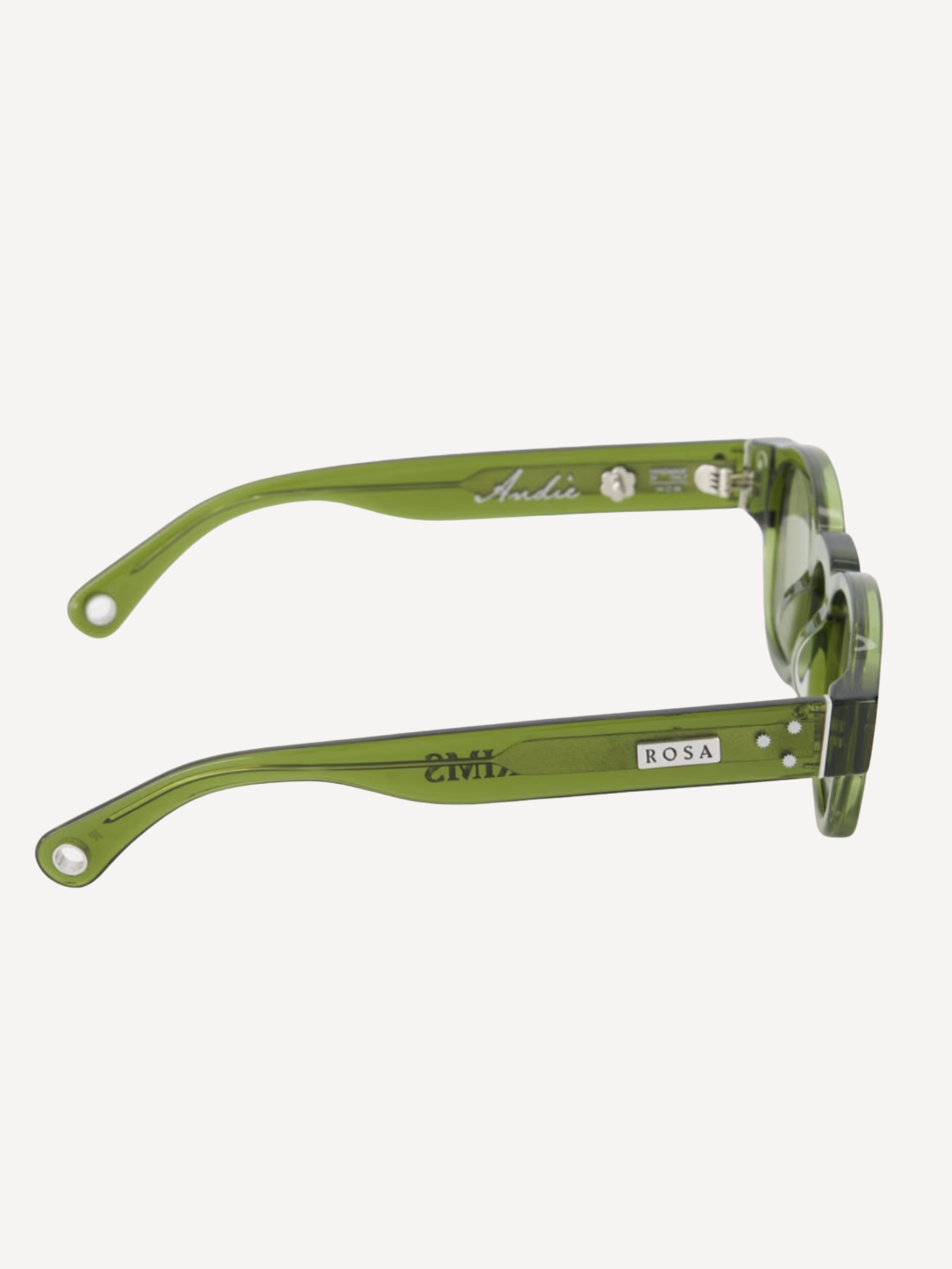 Smart, rounded and refined frames featuring Rosa’s signature RR and tiny sun-shaped rivets give a cheeky nod to the 90s yet remain totally of-the-moment. Every pair comes with a woven vegan leather case, lovingly named the Pocket Book.