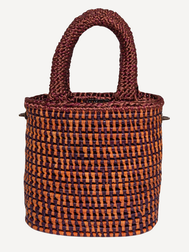 The Vida bag is a structured statement piece, handcrafted from carnauba straw using the intricate trancado technique and a refined two-tone color blend. It features a soft fabric lining and a unique crochet handle that adds an artisanal touch. Designed for versatility, it can be carried by hand or worn with the detachable Italian-finished metal strap for an elegant, modern look. Each piece takes up to three days to complete, honoring the time and essence of true artisanal craftsmanship.