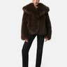 Tipped fox faux fur short coat with an exaggerated shawl collar.