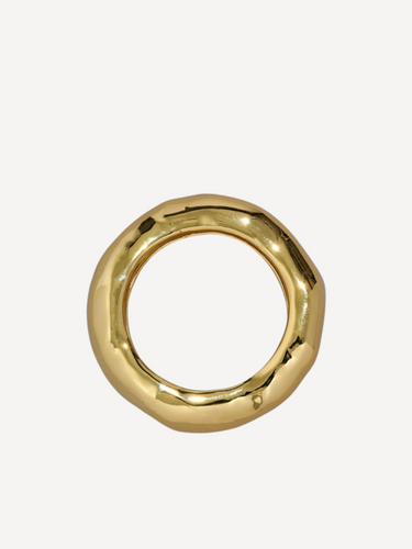 Domed bangle style is updated with molten 14k gold plated metalwork for a sculptural finish. The bracelet is designed for a comfort fit, with a soft curvature on the interior rim making it easy to slide on and off.