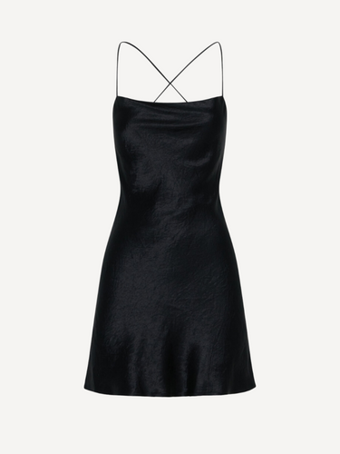 The Crush Bias Cowl Mini Slip will be your go-to piece this season. Cut in Crushed finish, and bias cut for a flattering fit, This mini slip dress also features a slight cowl neck line and cut away back enhanced by the fine interchangeable straps.