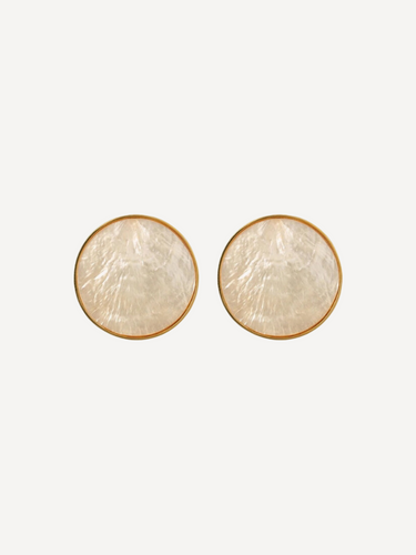 Bezel Set Shell Earrings 14k Gold Plated Brass