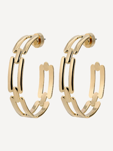 Fiona Hoops are chain style brass hoops with hypoallergenic surgical steel posts.
