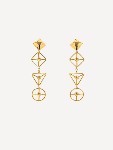 Featuring handmade mosaic- style figures and a rhombus stud, these beauties are everything that is cool in a long earring. A real golden affair.