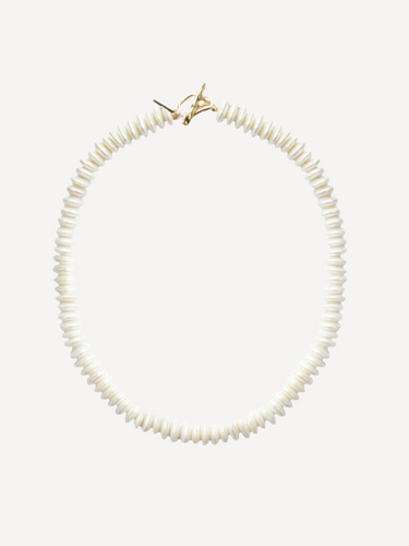 Handmade in the USA with shell beads and gold filled finishes. 16" in length.