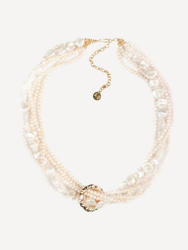 Be the most stylish mermaid in the sea with this amazing necklace! Braided layers of mixed freshwater pearls are connected by a custom organic link, and we think this is the perfect necklace for a special event! Truly a showstopper.