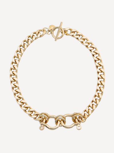 The Skye necklace is made from thick recycled brass squared off Cuban link chain, fastened with a toggle clasp. Necklace also includes 2 Horseshoe clasps.