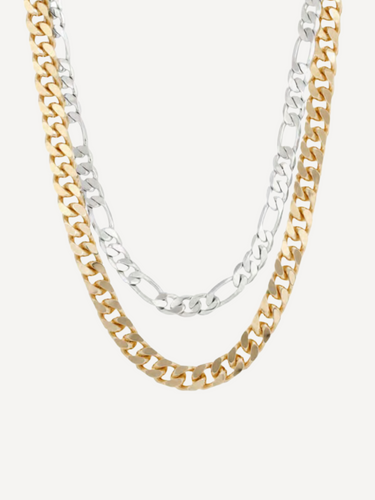 Our two-toned double curb chain necklace is made from our rounded curb chain. Its the perfect finishing touch to your look.