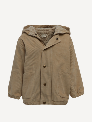 The Corduroy Coat is made with a classic cotton corduroy lined with warm, ethically sourced organic sherpa. This oversized, vintage-style coat features elasticated cuffs and a cozy hood to keep your children comfortable on the chilliest of days.