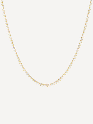 Gorgeous 14k solid reclaimed gold with 101 (5 CTW) hand-set fine, cultivated diamonds, colorless - D, E, F and clarity - VS. Each diamond is 2.3mm - 2.35mm (0.045 - 0.05 carats). 12.5in of diamonds with 3in adjustable rings for a total length of 15.5in.