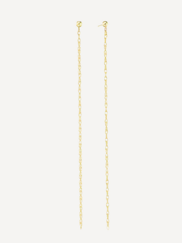 Delicate upcycled 14k solid gold chain create this dramatic earring that grazes the shoulder. The perfect piece for day to night style.