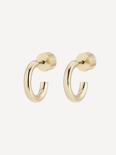 Lisa Huggie Hoops are recycled brass hoops with hypoallergenic surgical steel posts.
