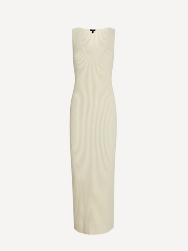 Say hello to the Agnes dress, this cotton knit dress is sleeveless, features a v neck line, hits mid shin and fits straight off the body.