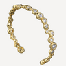 Radiant CZ crystals in molten 14k gold plated bezel settings are staggered to form this versatile and opulent skinny cuff thats perfect for stacking or as a classic single statement.