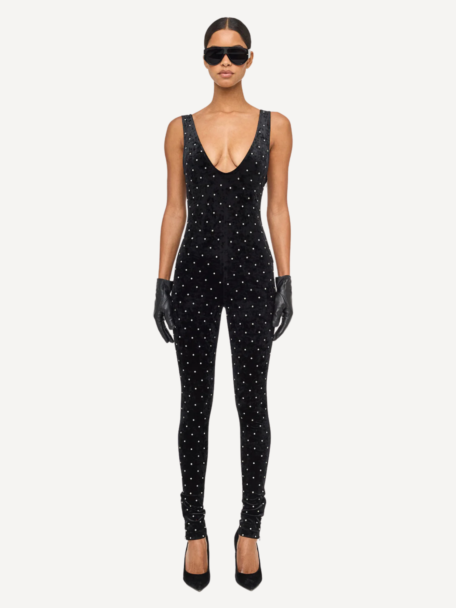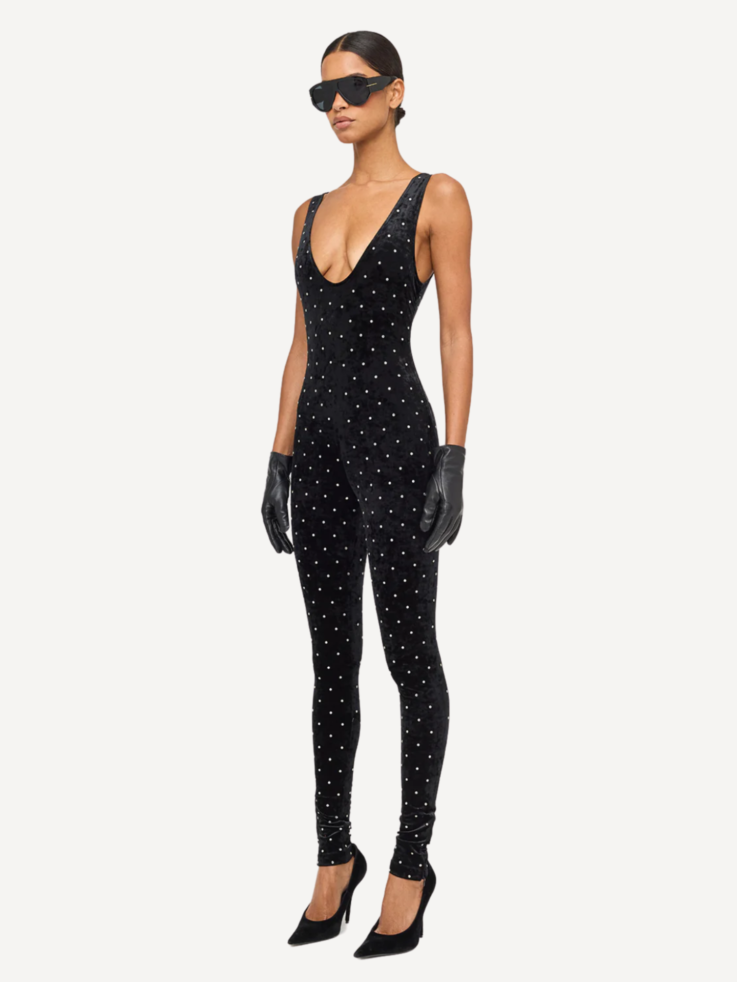 The Atria Catsuit redefines sleek dressing with a bold, body-con silhouette. Tailored from stretch jersey that moves effortlessly, it’s designed to sculpt and elongate. Captures the essence of confident femininity. Perfect worn solo with statement heels or layered under a sharp blazer.