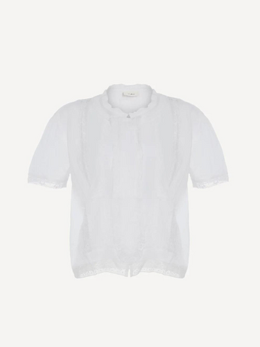 This dainty lace blouse is dreamy in layers of gauzy cotton enveloped with antique lacework echoes a bygone era albeit with a modern visitation.