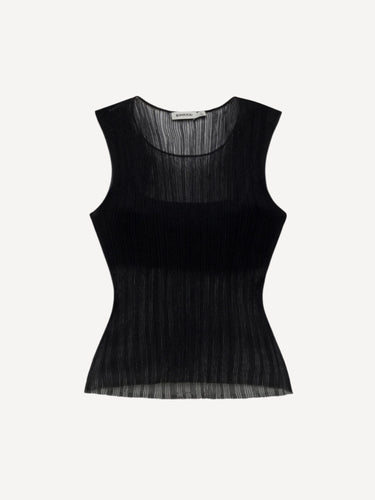 The Oakley Tank in Black. Step into sleek sophistication with this elegantly designed piece featuring an integrated bralette. Its figure-hugging silhouette and classic round neckline define a modern silhouette.