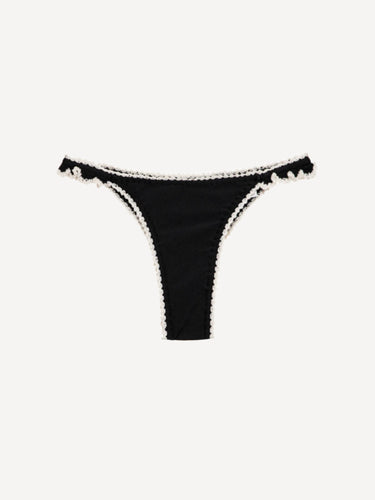 These bottoms are fully handmade in our poppy crochet material which is a new technique that allows each to be uniquely made. They feature a low rise classic fit with a ruffle along the hemline.