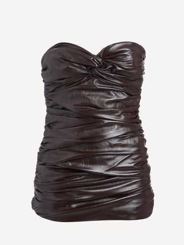 Ruched Mini Leather Dress
