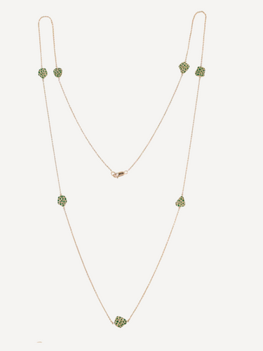 This delicate repetition of full enamel motifs on a gold chain gives an impression of joyful color and charm.